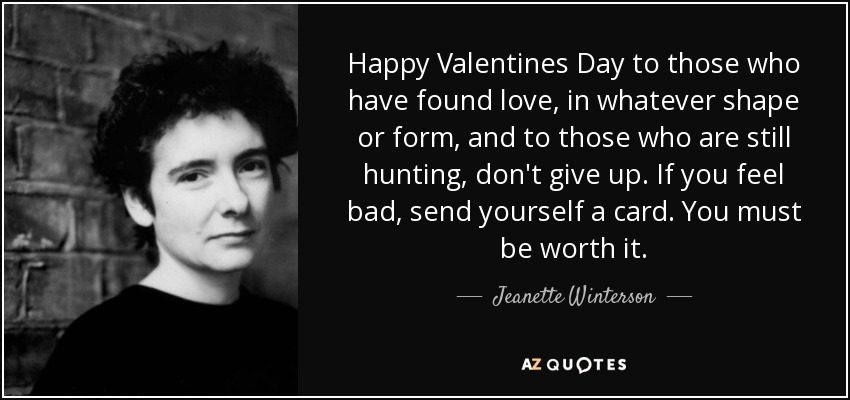 Happy Valentines Day to those who have found love, in whatever shape or form, and to those who are still hunting, don't give up. If you feel bad, send yourself a card. You must be worth it.