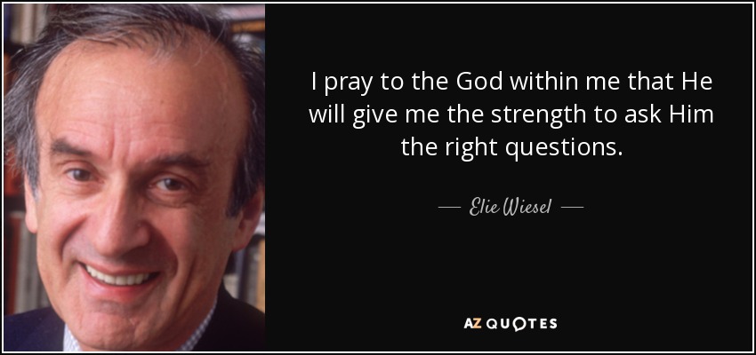 I pray to the God within me that He will give me the strength to ask Him the right questions.