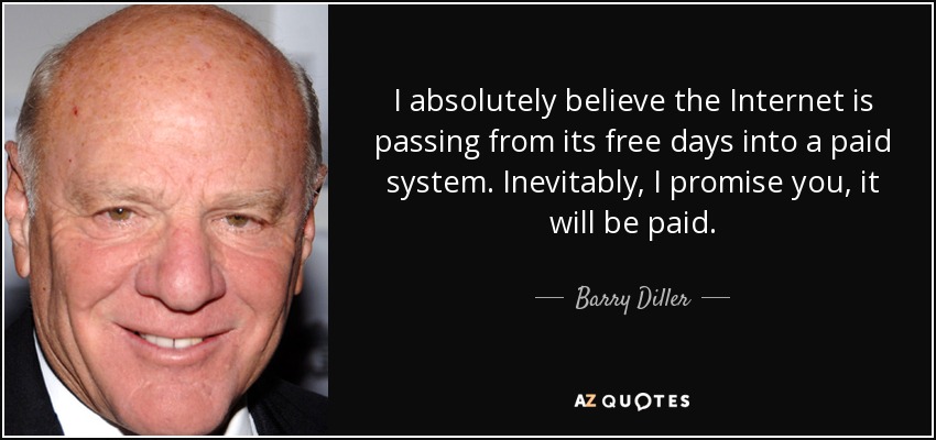 I absolutely believe the Internet is passing from its free days into a paid system. Inevitably, I promise you, it will be paid.