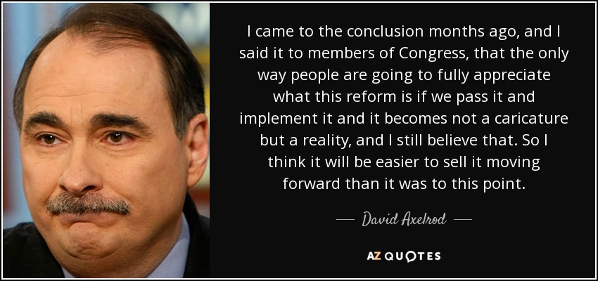 I came to the conclusion months ago, and I said it to members of Congress, that the only way people are going to fully appreciate what this reform is if we pass it and implement it and it becomes not a caricature but a reality, and I still believe that. So I think it will be easier to sell it moving forward than it was to this point.