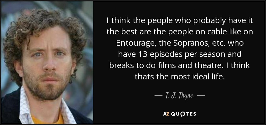 I think the people who probably have it the best are the people on cable like on Entourage, the Sopranos, etc. who have 13 episodes per season and breaks to do films and theatre. I think thats the most ideal life.