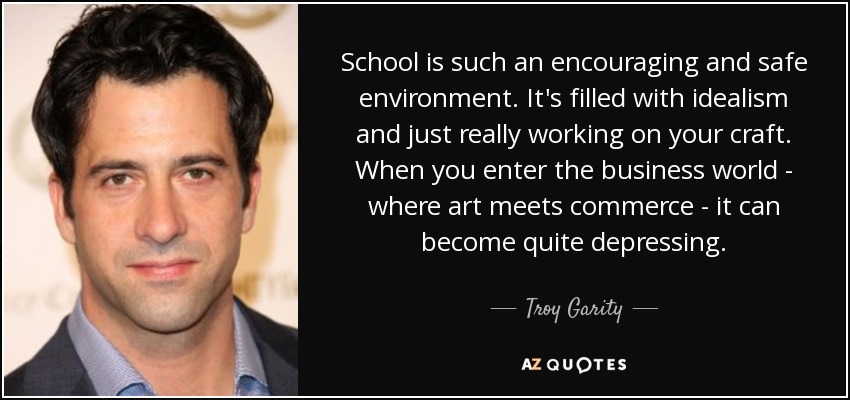 School is such an encouraging and safe environment. It's filled with idealism and just really working on your craft. When you enter the business world - where art meets commerce - it can become quite depressing.