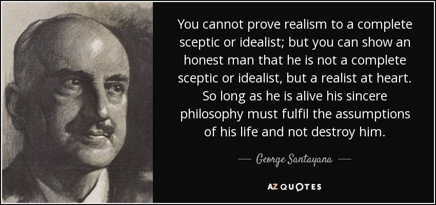You cannot prove realism to a complete sceptic or idealist; but you can show an honest man that he is not a complete sceptic or idealist, but a realist at heart. So long as he is alive his sincere philosophy must fulfil the assumptions of his life and not destroy him.