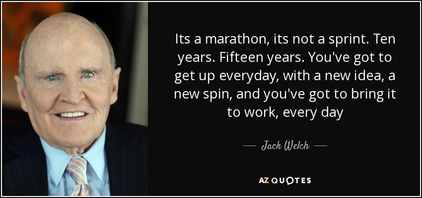 Its a marathon, its not a sprint. Ten years. Fifteen years. You've got to get up everyday, with a new idea, a new spin, and you've got to bring it to work, every day