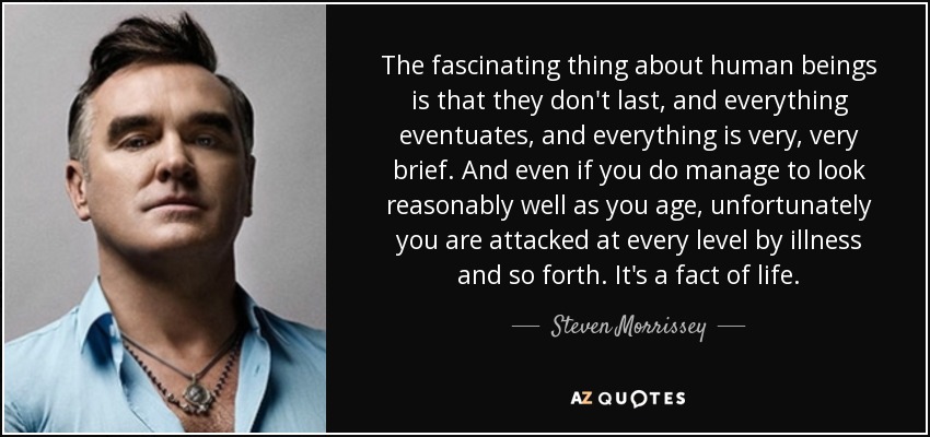 The fascinating thing about human beings is that they don't last, and everything eventuates, and everything is very, very brief. And even if you do manage to look reasonably well as you age, unfortunately you are attacked at every level by illness and so forth. It's a fact of life.