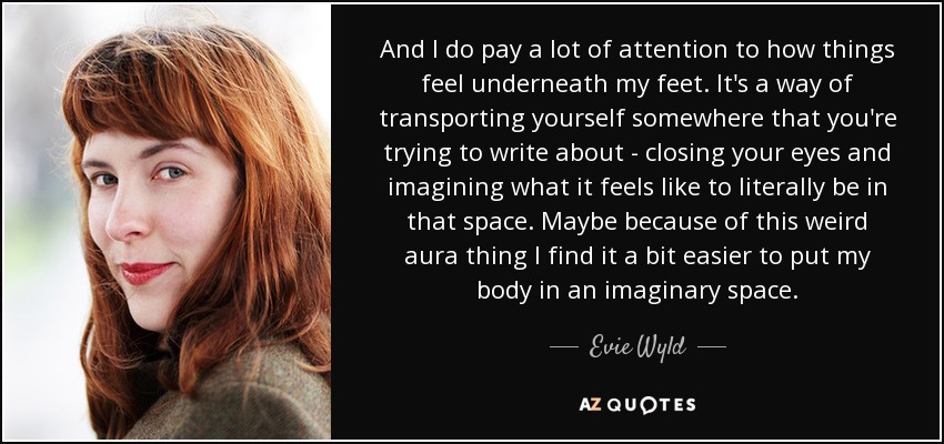 And I do pay a lot of attention to how things feel underneath my feet. It's a way of transporting yourself somewhere that you're trying to write about - closing your eyes and imagining what it feels like to literally be in that space. Maybe because of this weird aura thing I find it a bit easier to put my body in an imaginary space.