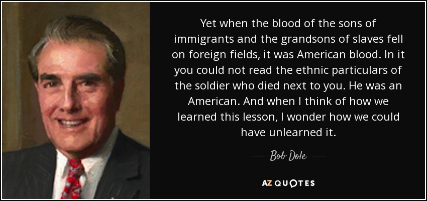 Yet when the blood of the sons of immigrants and the grandsons of slaves fell on foreign fields, it was American blood. In it you could not read the ethnic particulars of the soldier who died next to you. He was an American. And when I think of how we learned this lesson, I wonder how we could have unlearned it.
