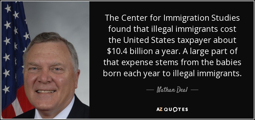 The Center for Immigration Studies found that illegal immigrants cost the United States taxpayer about $10.4 billion a year. A large part of that expense stems from the babies born each year to illegal immigrants.