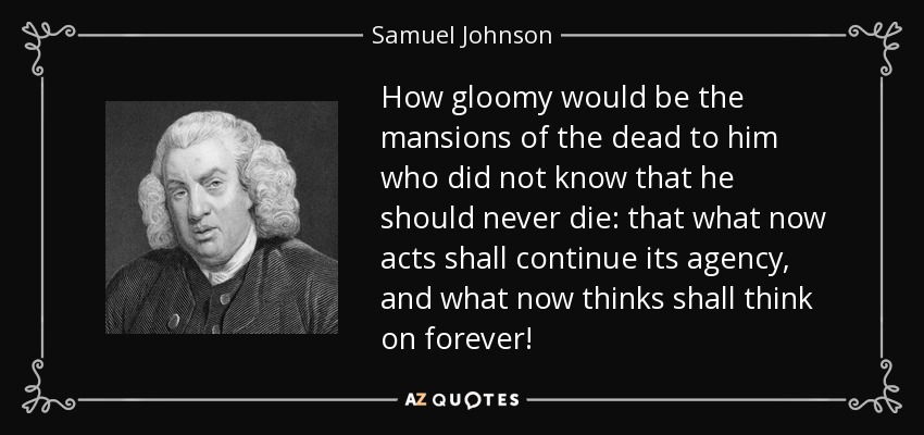 How gloomy would be the mansions of the dead to him who did not know that he should never die: that what now acts shall continue its agency, and what now thinks shall think on forever!
