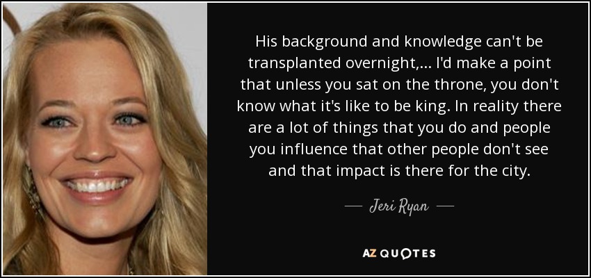 His background and knowledge can't be transplanted overnight, ... I'd make a point that unless you sat on the throne, you don't know what it's like to be king. In reality there are a lot of things that you do and people you influence that other people don't see and that impact is there for the city.