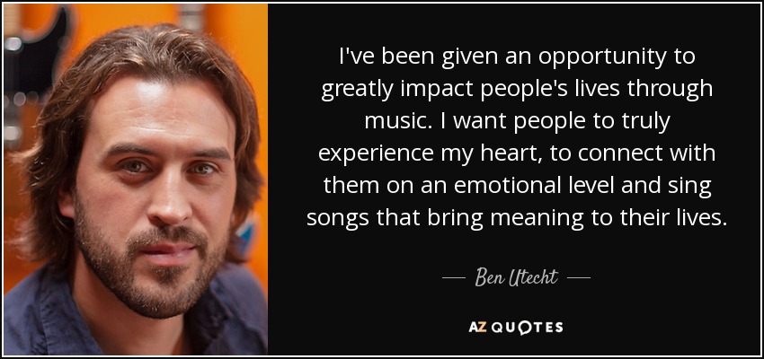 I've been given an opportunity to greatly impact people's lives through music. I want people to truly experience my heart, to connect with them on an emotional level and sing songs that bring meaning to their lives.