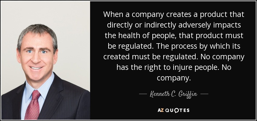 When a company creates a product that directly or indirectly adversely impacts the health of people, that product must be regulated. The process by which its created must be regulated. No company has the right to injure people. No company.