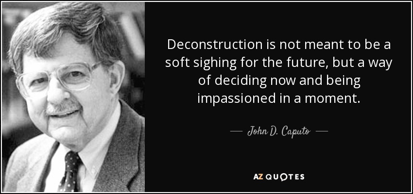 Deconstruction is not meant to be a soft sighing for the future, but a way of deciding now and being impassioned in a moment.