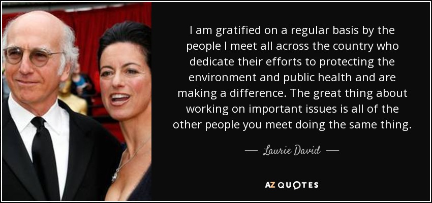 I am gratified on a regular basis by the people I meet all across the country who dedicate their efforts to protecting the environment and public health and are making a difference. The great thing about working on important issues is all of the other people you meet doing the same thing.