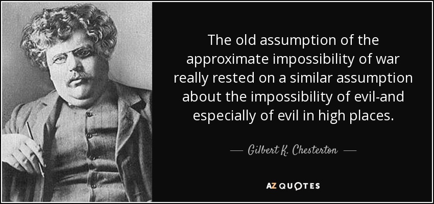 The old assumption of the approximate impossibility of war really rested on a similar assumption about the impossibility of evil-and especially of evil in high places.