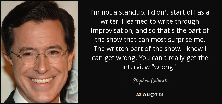 I'm not a standup. I didn't start off as a writer, I learned to write through improvisation, and so that's the part of the show that can most surprise me. The written part of the show, I know I can get wrong. You can't really get the interview "wrong."