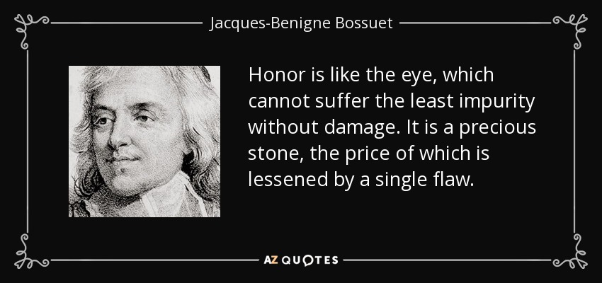 Honor is like the eye, which cannot suffer the least impurity without damage. It is a precious stone, the price of which is lessened by a single flaw.