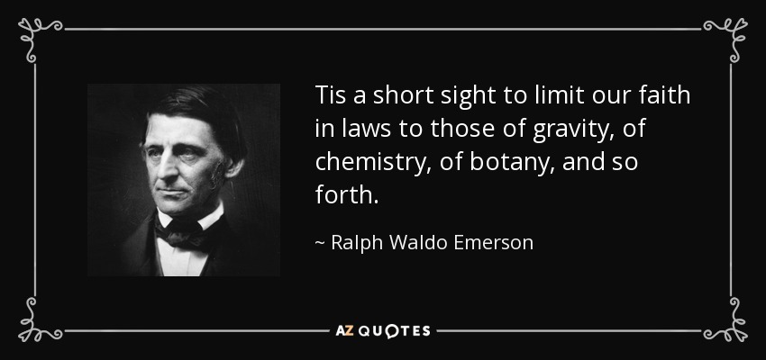 Tis a short sight to limit our faith in laws to those of gravity, of chemistry, of botany, and so forth.