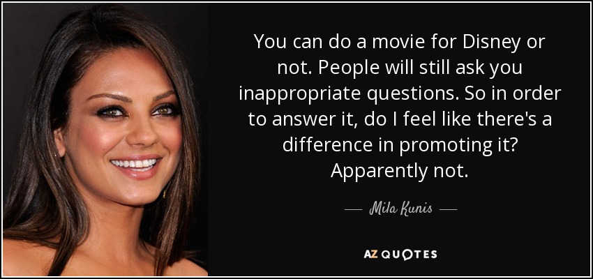 You can do a movie for Disney or not. People will still ask you inappropriate questions. So in order to answer it, do I feel like there's a difference in promoting it? Apparently not.
