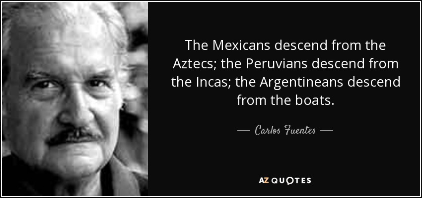 The Mexicans descend from the Aztecs; the Peruvians descend from the Incas; the Argentineans descend from the boats.