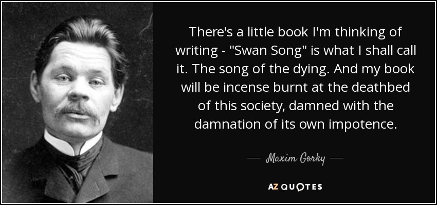There's a little book I'm thinking of writing - "Swan Song" is what I shall call it. The song of the dying. And my book will be incense burnt at the deathbed of this society, damned with the damnation of its own impotence.