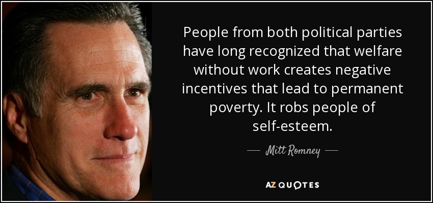 People from both political parties have long recognized that welfare without work creates negative incentives that lead to permanent poverty. It robs people of self-esteem.
