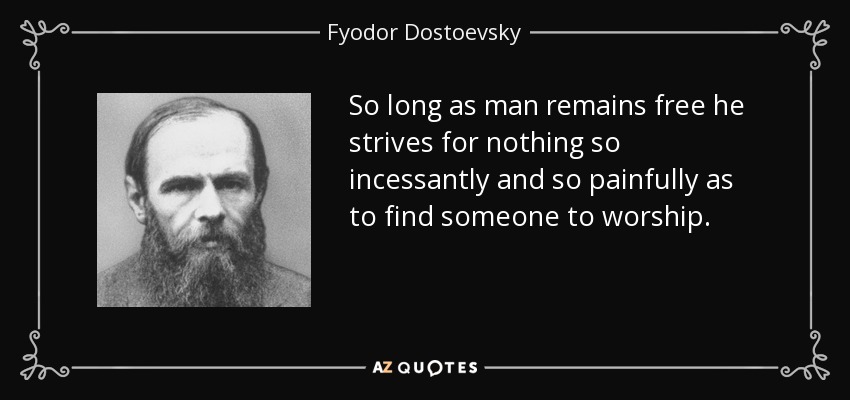 So long as man remains free he strives for nothing so incessantly and so painfully as to find someone to worship.