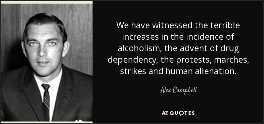 We have witnessed the terrible increases in the incidence of alcoholism, the advent of drug dependency, the protests, marches, strikes and human alienation.