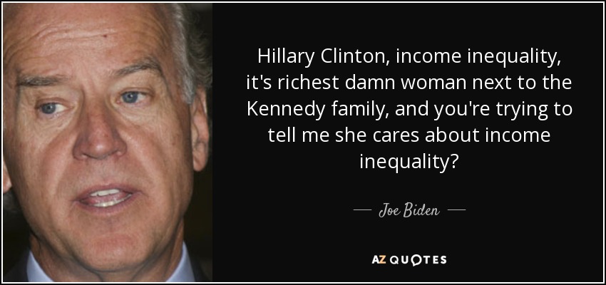 Hillary Clinton, income inequality, it's richest damn woman next to the Kennedy family, and you're trying to tell me she cares about income inequality?