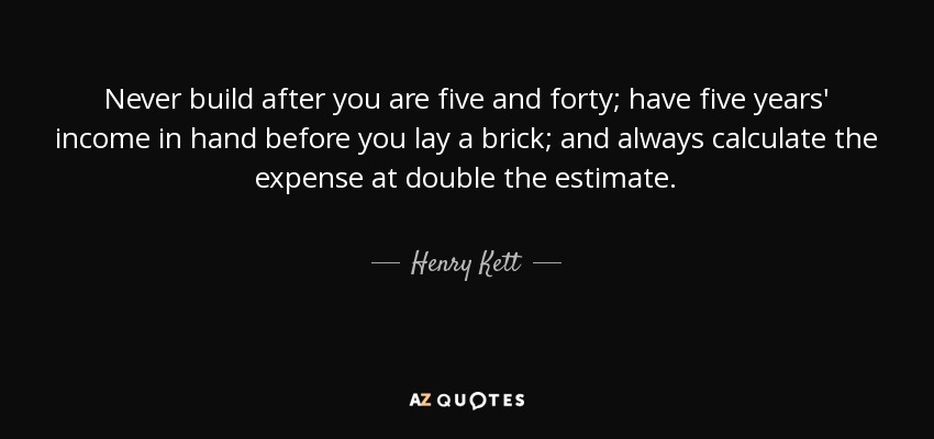 Never build after you are five and forty; have five years' income in hand before you lay a brick; and always calculate the expense at double the estimate.