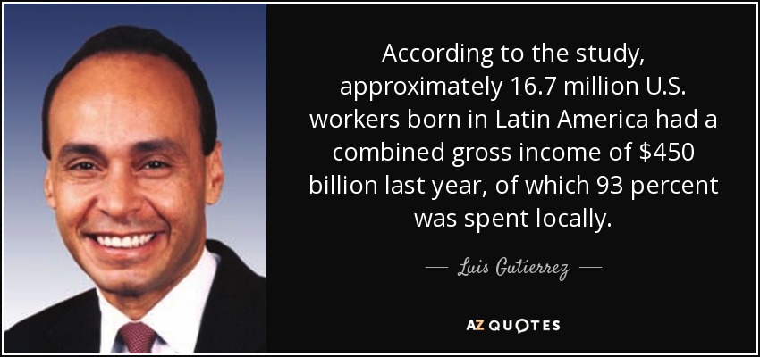 According to the study, approximately 16.7 million U.S. workers born in Latin America had a combined gross income of $450 billion last year, of which 93 percent was spent locally.