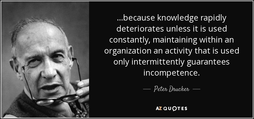 ...because knowledge rapidly deteriorates unless it is used constantly, maintaining within an organization an activity that is used only intermittently guarantees incompetence.