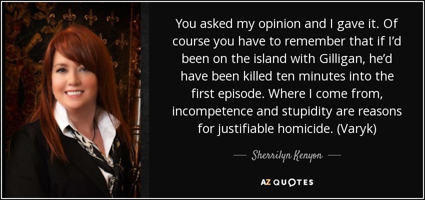 You asked my opinion and I gave it. Of course you have to remember that if I’d been on the island with Gilligan, he’d have been killed ten minutes into the first episode. Where I come from, incompetence and stupidity are reasons for justifiable homicide. (Varyk)
