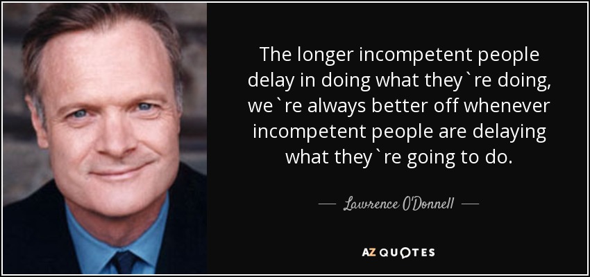 The longer incompetent people delay in doing what they`re doing, we`re always better off whenever incompetent people are delaying what they`re going to do.