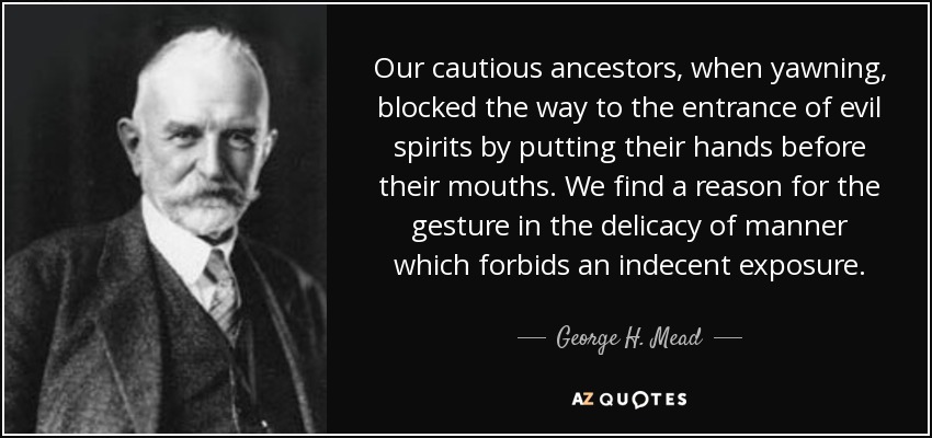 Our cautious ancestors, when yawning, blocked the way to the entrance of evil spirits by putting their hands before their mouths. We find a reason for the gesture in the delicacy of manner which forbids an indecent exposure.