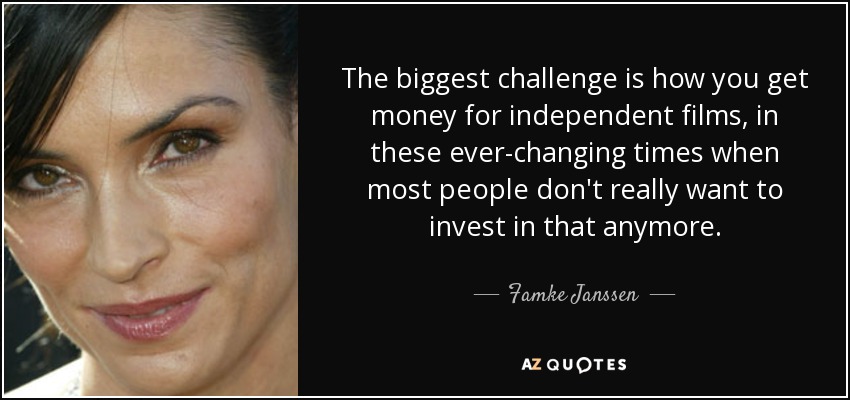The biggest challenge is how you get money for independent films, in these ever-changing times when most people don't really want to invest in that anymore.