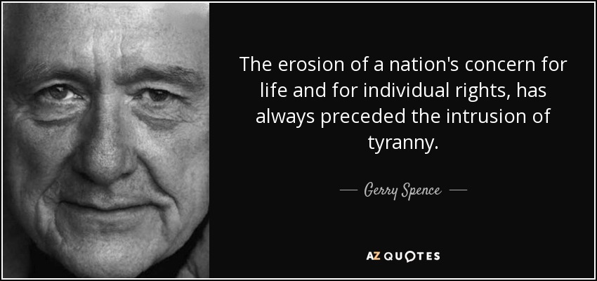 The erosion of a nation's concern for life and for individual rights, has always preceded the intrusion of tyranny.