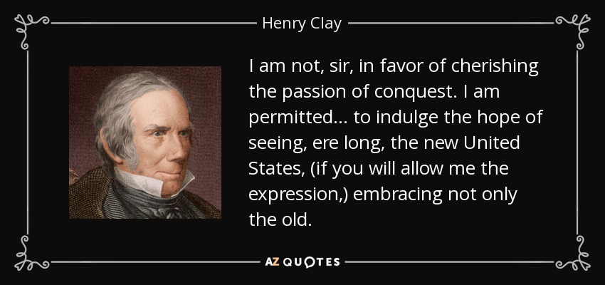 I am not, sir, in favor of cherishing the passion of conquest. I am permitted ... to indulge the hope of seeing, ere long, the new United States, (if you will allow me the expression,) embracing not only the old.