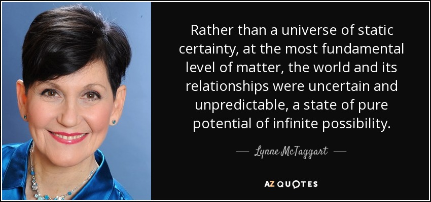 Rather than a universe of static certainty, at the most fundamental level of matter, the world and its relationships were uncertain and unpredictable, a state of pure potential of infinite possibility.