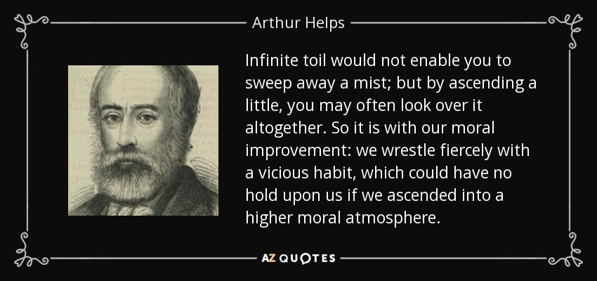 Infinite toil would not enable you to sweep away a mist; but by ascending a little, you may often look over it altogether. So it is with our moral improvement: we wrestle fiercely with a vicious habit, which could have no hold upon us if we ascended into a higher moral atmosphere.