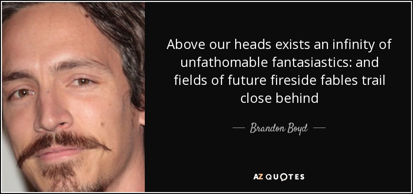 Above our heads exists an infinity of unfathomable fantasiastics: and fields of future fireside fables trail close behind