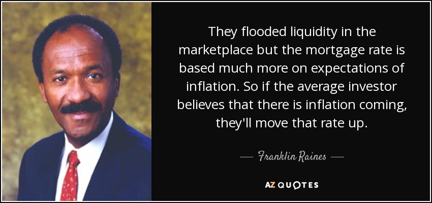They flooded liquidity in the marketplace but the mortgage rate is based much more on expectations of inflation. So if the average investor believes that there is inflation coming, they'll move that rate up.