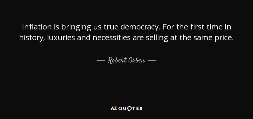Inflation is bringing us true democracy. For the first time in history, luxuries and necessities are selling at the same price.