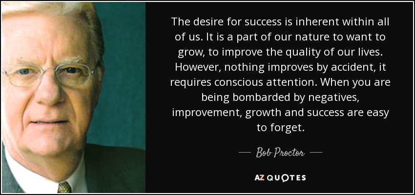 The desire for success is inherent within all of us. It is a part of our nature to want to grow, to improve the quality of our lives. However, nothing improves by accident, it requires conscious attention. When you are being bombarded by negatives, improvement, growth and success are easy to forget.