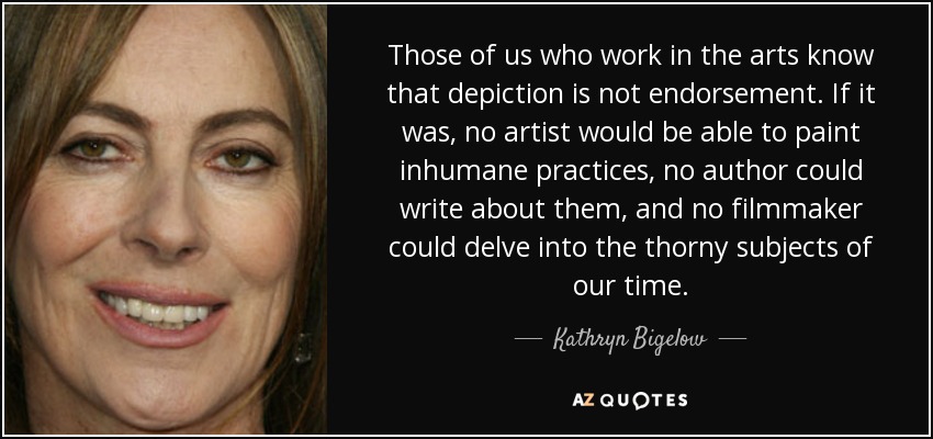 Those of us who work in the arts know that depiction is not endorsement. If it was, no artist would be able to paint inhumane practices, no author could write about them, and no filmmaker could delve into the thorny subjects of our time.