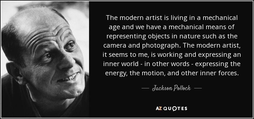The modern artist is living in a mechanical age and we have a mechanical means of representing objects in nature such as the camera and photograph. The modern artist, it seems to me, is working and expressing an inner world - in other words - expressing the energy, the motion, and other inner forces.