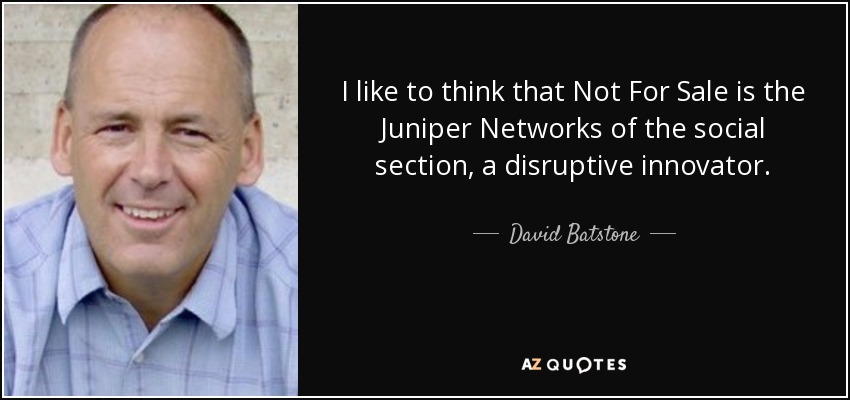 I like to think that Not For Sale is the Juniper Networks of the social section, a disruptive innovator.
