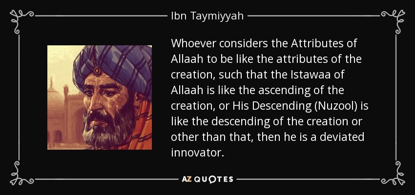 Whoever considers the Attributes of Allaah to be like the attributes of the creation, such that the Istawaa of Allaah is like the ascending of the creation, or His Descending (Nuzool) is like the descending of the creation or other than that, then he is a deviated innovator.