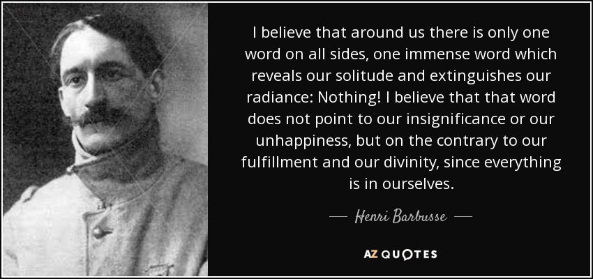 I believe that around us there is only one word on all sides, one immense word which reveals our solitude and extinguishes our radiance: Nothing! I believe that that word does not point to our insignificance or our unhappiness, but on the contrary to our fulfillment and our divinity, since everything is in ourselves.