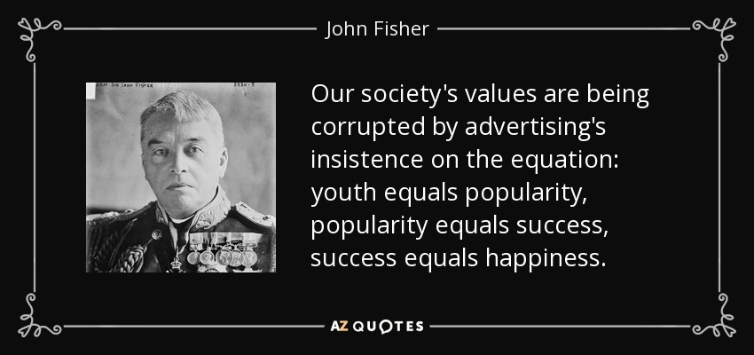 Our society's values are being corrupted by advertising's insistence on the equation: youth equals popularity, popularity equals success, success equals happiness.